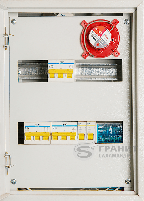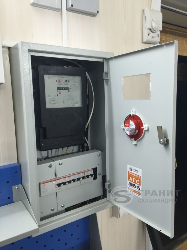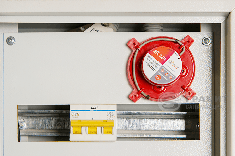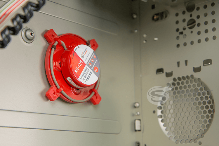 Standalone aerosol fire extinguishing unit with a thermal starter AGS 12/1 shall be installed on the enclosing structures.