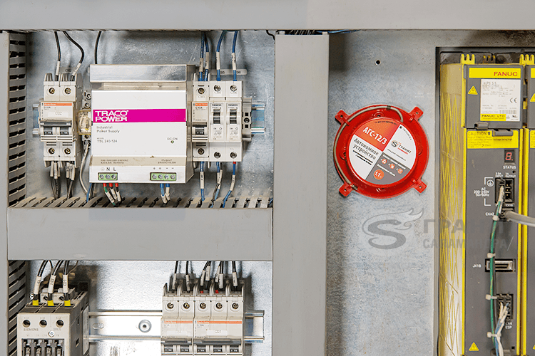 Standalone aerosol fire extinguishing unit with a thermal starter AGS 12/1,1 shall be installed on the enclosing structures.